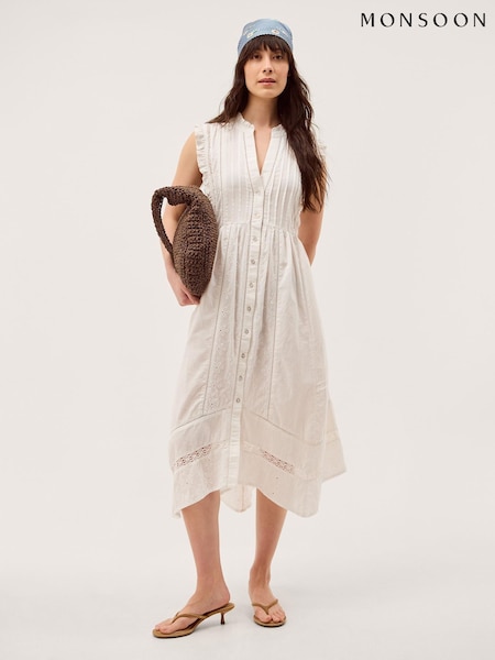 Monsoon Cream Lacy Sleeveless Handkerchief Midi Dress