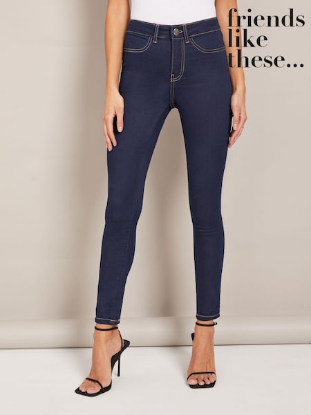 Friends Like These Dark Blue Elasticated Waist Denim Jeggings
