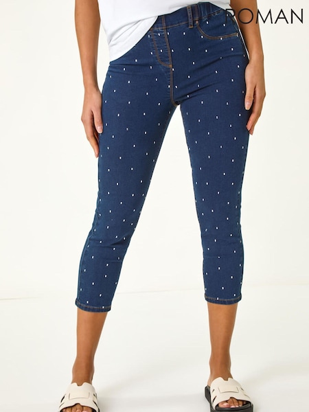 Roman Blue Embellished Cropped Stretch Leggings