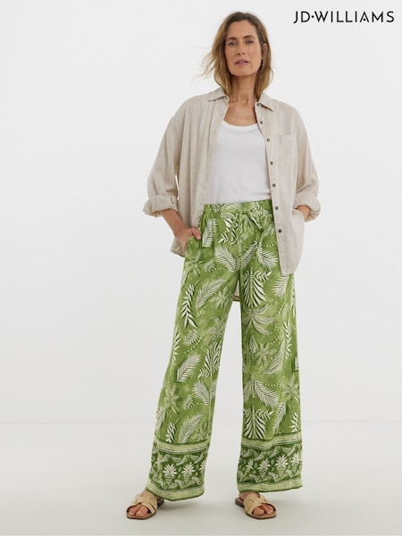 Berde - Pantalon na Malapad na Paa na Pinaghalong Linen ni JD Williams