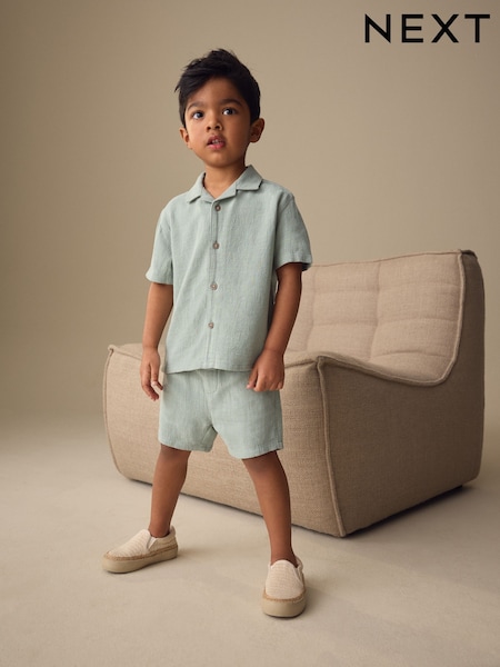 Light Green Short Sleeve Revere Collar Shirt & Shorts Set (3mths-10yrs)