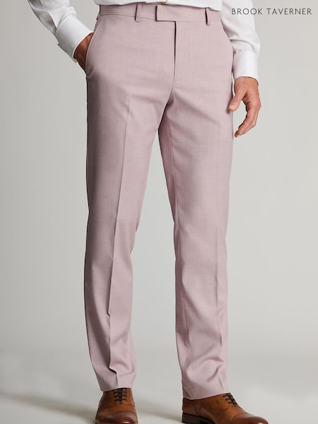 Brook Taverner Pink Tailored Fit Textured Cotton Stretch Chinos