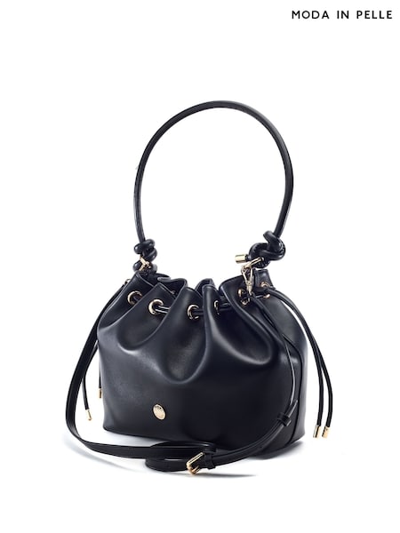 Moda in Pelle Black Briela Leather Ruched Eyelet Detail Knot Bag