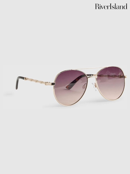 River Island Gold Metal Twist Aviator Sunglasses