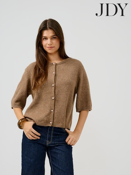 JDY Brown Short Sleeve Pearl Button Cardigan