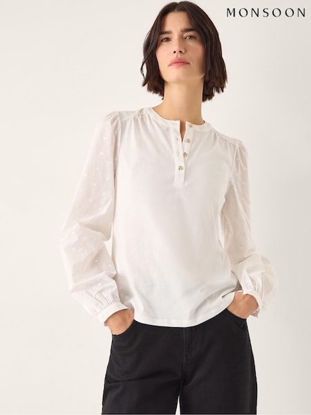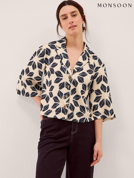 Monsoon Natural Fi Floral Print Sheer-Sleeve Top