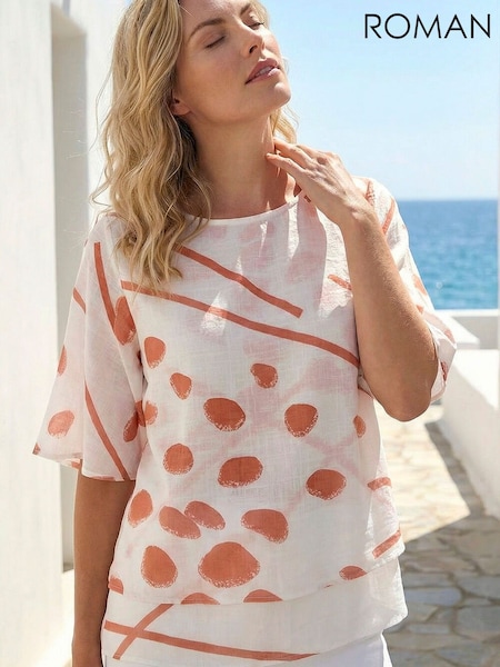 Roman White Abstract Layered Tunic Top