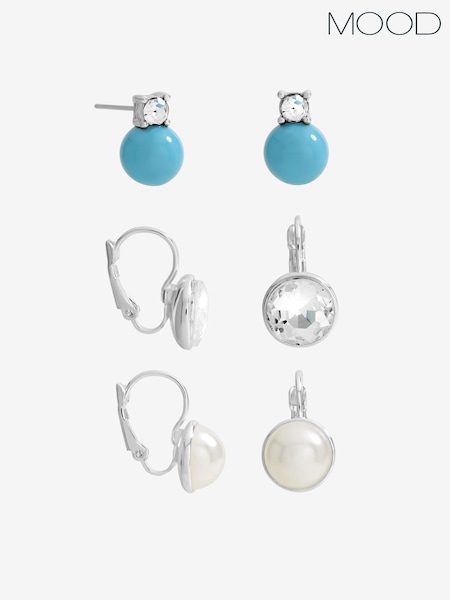 Mood Silver Plated Mix And Match Stars And Moon Drop Earring