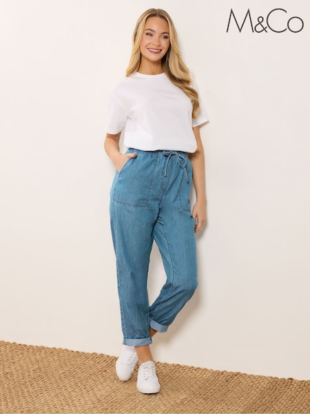 M&Co Blue Petite Lightweight Denim Joggers