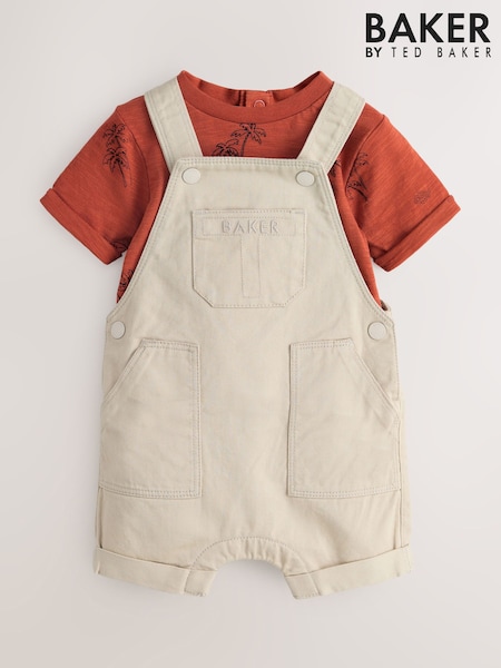 Baker by Ted Baker Stone and Rust Red Dungarees T-Shirt Set