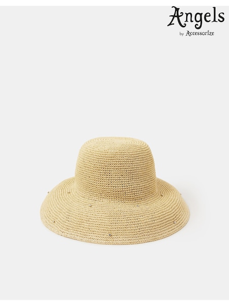 Accessorize Natural Diamante Straw Bucket Hat