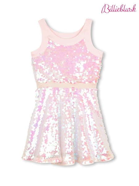 Billieblush Iridecent Sequin Racer Neck Party Pink Dress