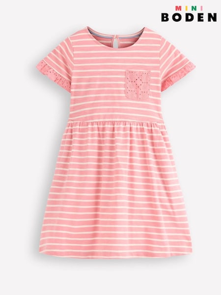 Boden Pink Broderie Pocket Jersey Dress