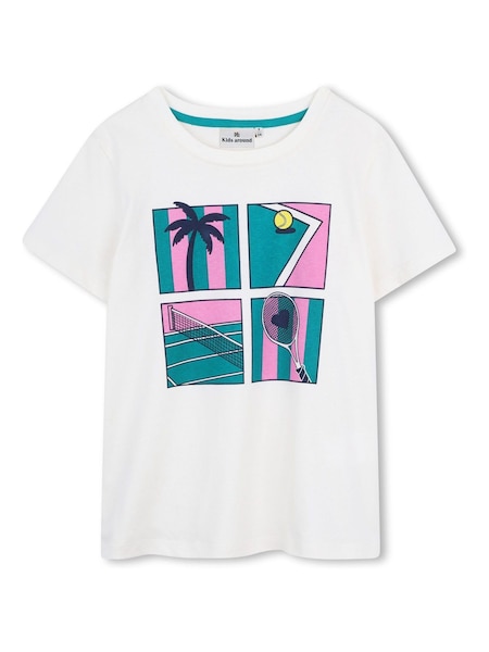 Kids Around Cream Tennis Graphic Print Short Sleeve T-Shirt