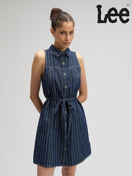 Lee Blue Pinstripe Sleeveless Denim Dress