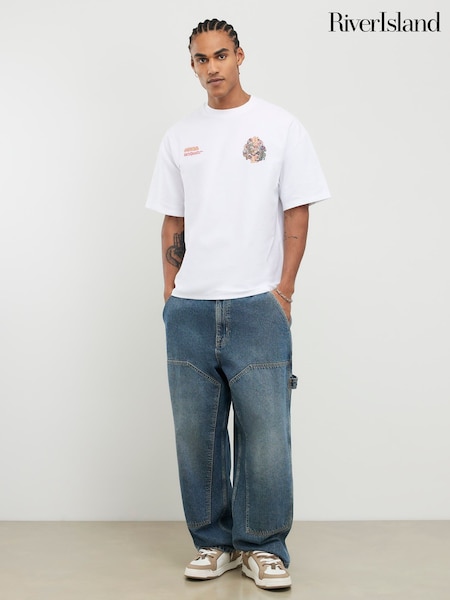 River Island White Oversized Fit Sanctuaire T-Shirt