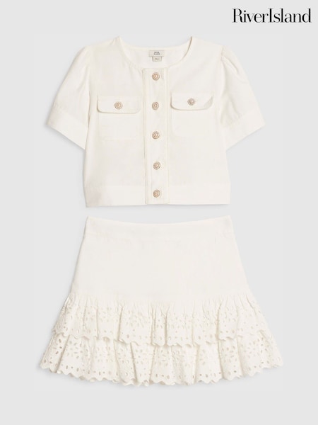River Island White Sleeveless Blazer & Pleated Trousers Set