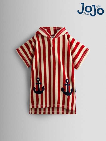 JoJo Maman Bébé Red Stripe Anchor Hooded Poncho Towel