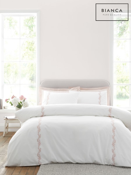Bianca White Blue Camille Embroidered Floral Print Cotton Duvet Cover Set
