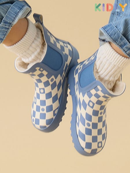 KIDLY by MORI Warm Waterproof Fur-Lined Ankle Wellie Green Boots Check Print