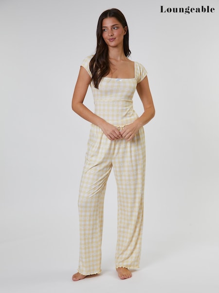 Loungeable Yellow Gingham Heart Printed Cami and Wide Leg Trousers Pyjamas Set