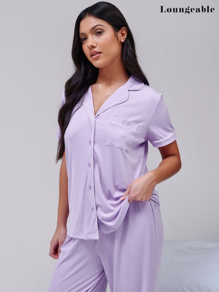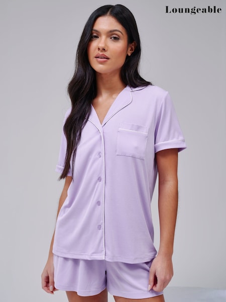 Loungeable Purple Super Soft Jersey Rib Short Sleeve Button Through Pyjamas