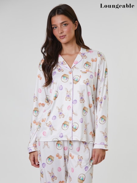 Loungeable White Easter Bunny Printed Jersey Long Sleeve and Trouser Set