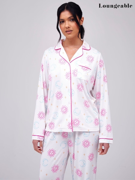 Loungeable White Celestial Printed Super Soft Revere Pyjamas Set