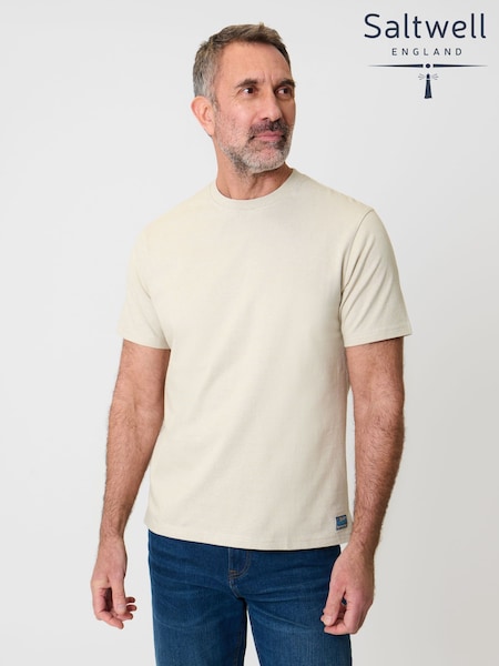 Saltwell Cream Stripe Crew Neck Cotton T-Shirt