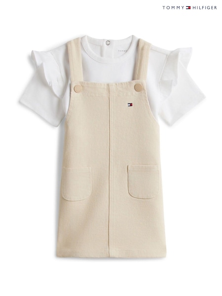 Tommy Hilfiger Natural Essential Dungaree Dress And T-Shirt Set