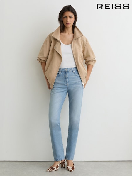Reiss Neutral Selin Mid-Rise Straight-Leg Jeans