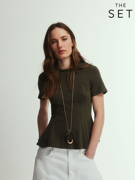The Set 3 Pack Peplum Waisted T-Shirts Chocolate Brown/Khaki Green/Cream