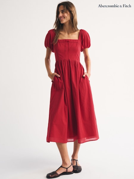 Crveno - Abercrombie & Fitch Emerson Puff Sleeve Midi Dress