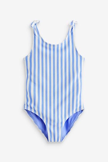 Blue/White Stripe Frill Sleeve Swimsuit (3mths-7yrs)