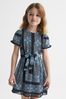 Expand her special occasion selection with the navy Alianna dress. It’s crafted from a unique floral print and fitted feminine puff sleeves. Frill detailing accentuates the look, whilst a waist belt tailors the profile. Pair with her favourite pumps to get party-ready in an instant. Floral print Crew neckline Puff sleeves Frill detailing Belted waist Zip closure to reverse Relaxed fit Lined The model is wearing a size 5-6 yrs Measurements of model: Height3ft 9" / 120cm