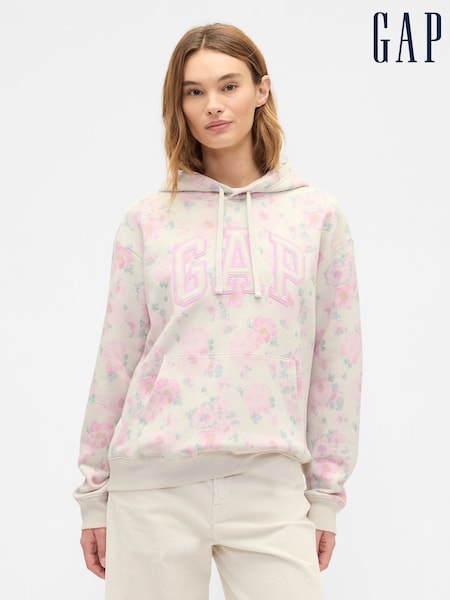 Gap Pink Floral Relaxed Logo Hoodie