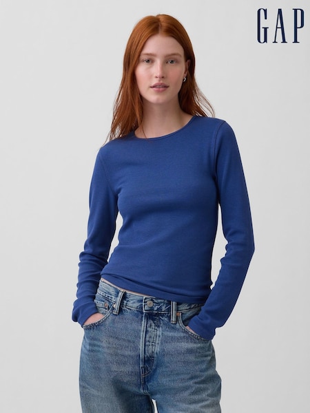Gap Blue Modern Rib Long Sleeve T-Shirt