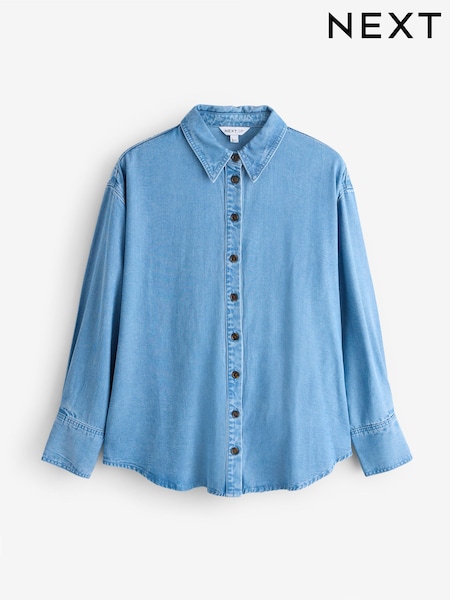 Blue Broderie Volume Sleeve Tie Back Top