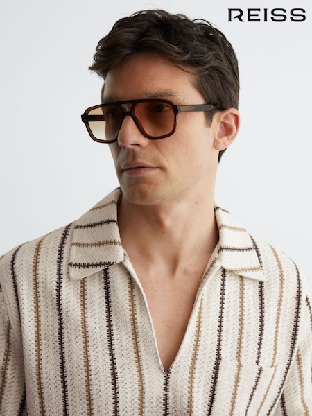 Reiss Ecru Chatham Crochet Stripe Overhead Shirt