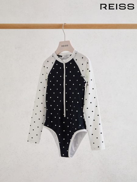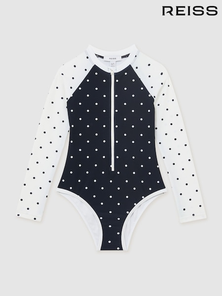 Reiss Navy/Ivory Sally 9-13 yrs Polka-Dot Long-Sleeve Swimsuit