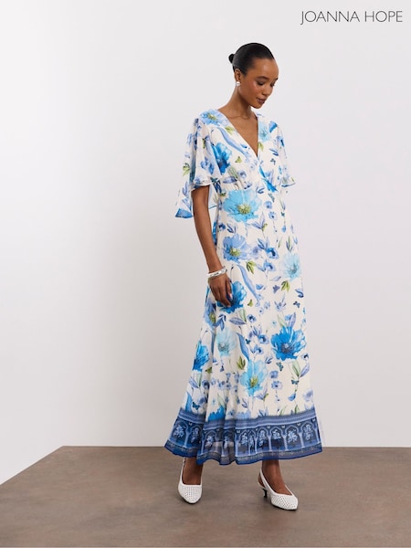 Joanna Hope White Ombre Floral Print Tea Dress With Cape Detailing