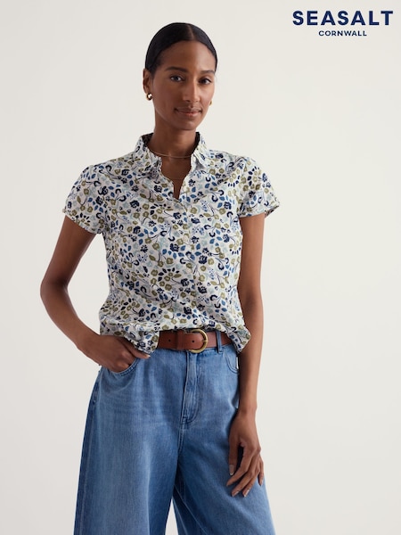 ลายดอกไม้สีน้ำเงินเข้ม - เสื้อเชิ้ต Larissa จาก Seasalt Cornwall