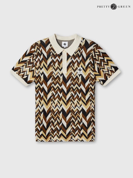 Pretty Green Natural Starship Short Sleeve Knit Polo Shirt