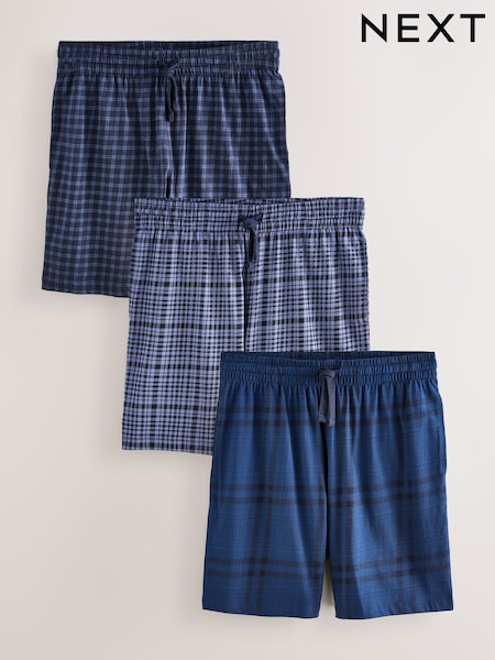Navy Blue Check Jersey Short Pyjamas 3 Pack