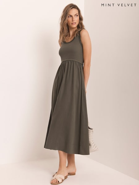 Mint Velvet Green Cotton Blend Midi Dress