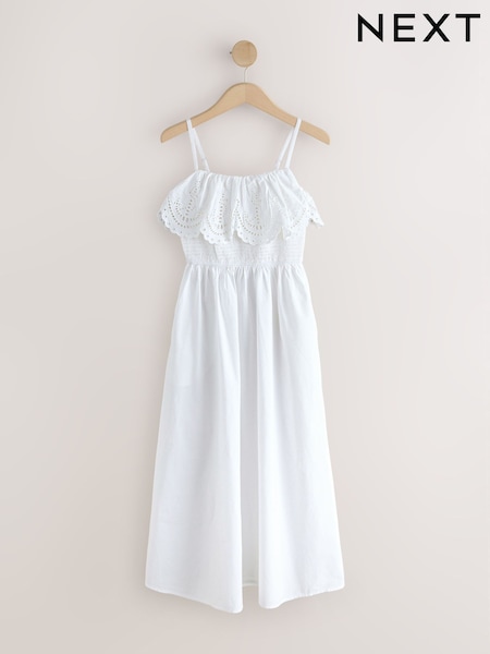 White Sleeveless Foldover Maxi Dress with Cutwork