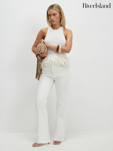 River Island White High Rise Stretch Straight Jeans