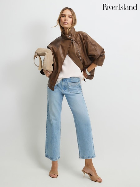 River Island Blue Mid Rise Cropped Wide Leg Jeans