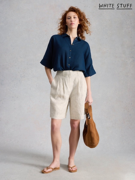 Tommy Hilfiger White Flag Embroidery Pure Linen Shorts