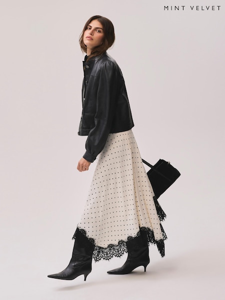 Mint Velvet Cream Polka Dot Lace Trim Midi Skirt
